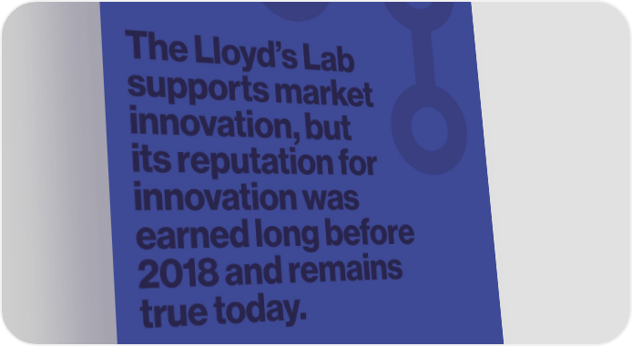 18 Lloyd’s Lab Impact Report 19 oI un tno s iv dea thet io The Lloyd’s Lab n supports market L innovation, but ab its reputation for innovation was earned long before 2018 and remains true today. © Lloyd’s